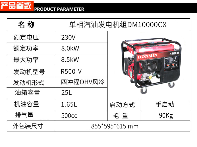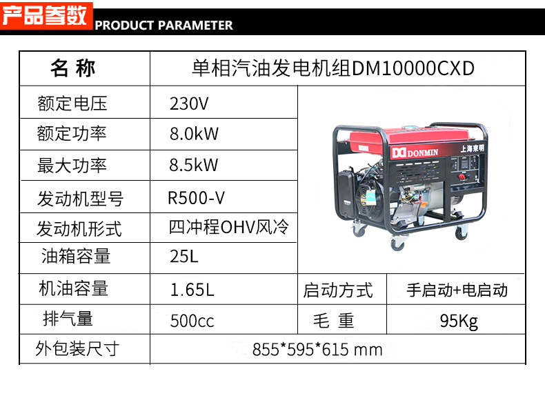 * 表示必填采購:單相8kw小型汽油發(fā)電機(jī)組 DM10000CX(D)