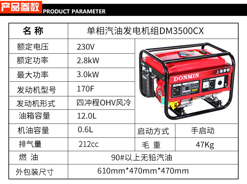 * 表示必填采購:單相3kW小型汽油發(fā)電機組 DM3500CX