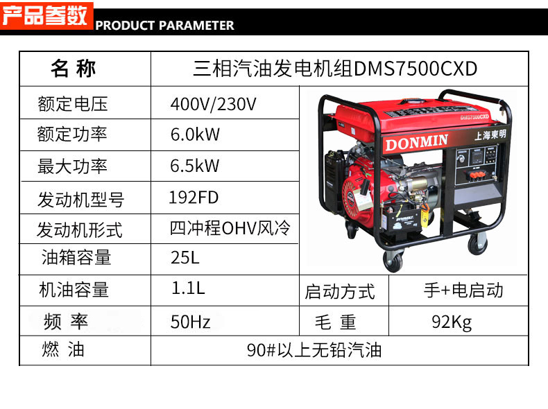 - 三相6kW汽油發(fā)電機(jī) DMS7500CXD電動(dòng)