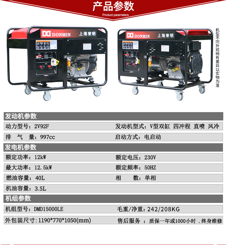 - 上海東明12KW單三相柴油發電機組DMDS15000LE。